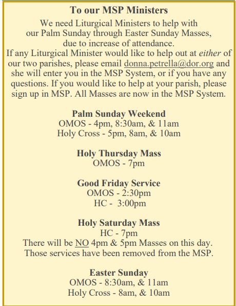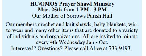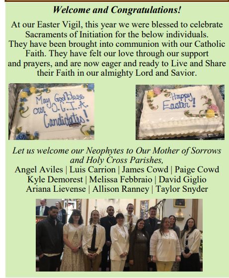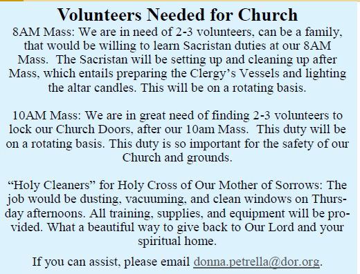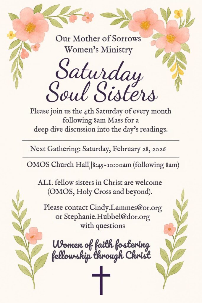 Thanks for checking in! This page lists some Upcoming activities at both Our Mother of Sorrows and Holy Cross Parishes!…