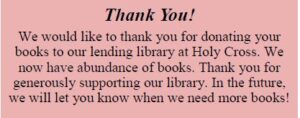 You may also navigate to GET INVOLVED/HOLY CROSS SCHOOL on this page to get more information and a link to the Holy Cross School Website!