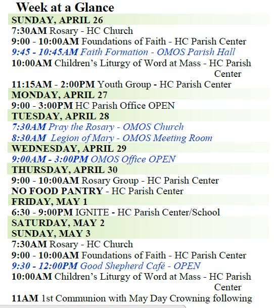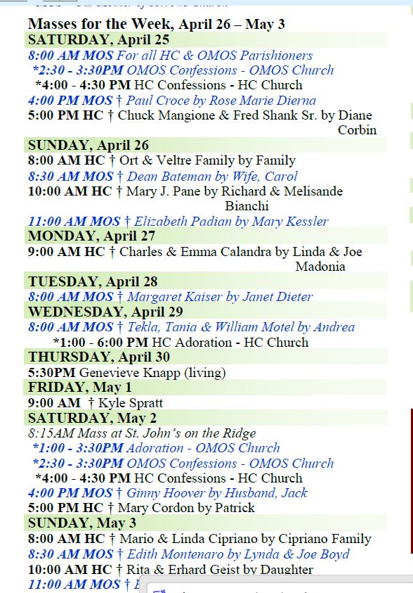 Mass Intentions for this Week