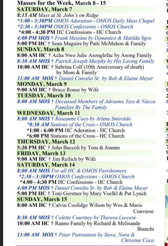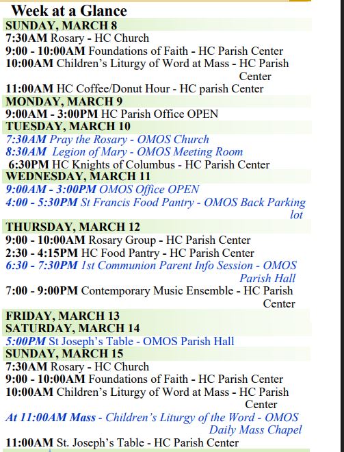 OUR MOTHER OF SORROWS AND HOLY CROSS SCHEDULE FOR THIS UPCOMING WEEK (March 1st TO MARCH 8th):