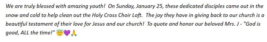 PARISH ACTIVITIES! Updated January 27th , 2026