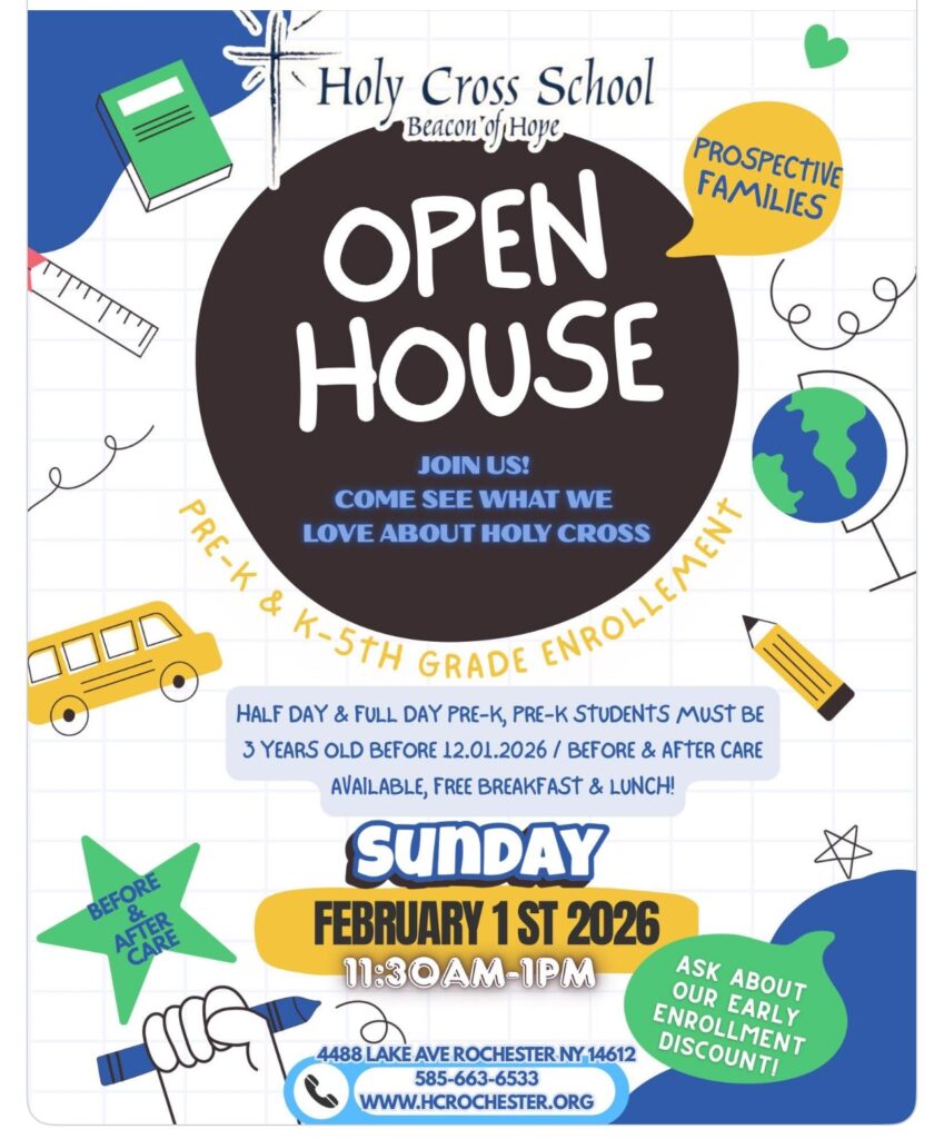 You may also navigate to GET INVOLVED/HOLY CROSS SCHOOL on this page to get more information and a link to the Holy Cross School Website!